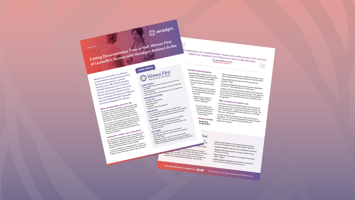 Learn how Women First of Louisville cut charting time by 50% with Veradigm Ambient Scribe, improving accuracy and patient care. Read their success story.