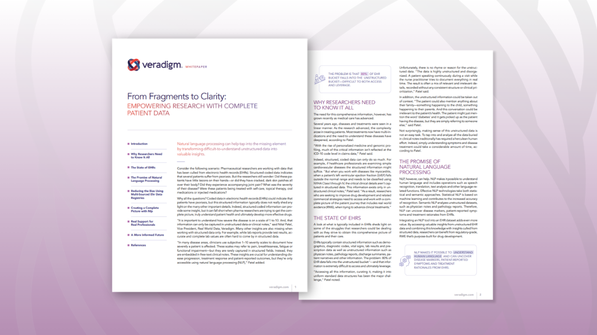 The future of pharmaceutical research depends on unlocking insight, not just accumulating data. NLP-enabled approaches provide a path to more complete, accurate, and actionable real-world evidence. To learn how NLP is helping researchers overcome the limits of traditional EHR data and extract greater value from pharma real-world data, download the full white paper and explore what becomes possible when no critical detail is left behind.